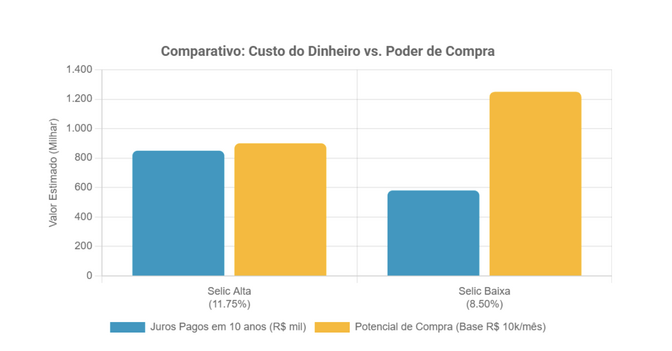 A queda contratada da Taxa Selic para 12,00% em 2026 não é, portanto, apenas uma previsão macroeconômica, mas sim o elemento central que define o timing estratégico para o setor imobiliário e para os consumidores.